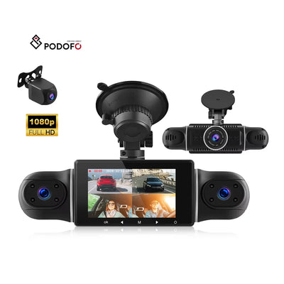 Podofo 3 Inch Car Dash Cam With 4 Cameras 360 Degree 1080P DVR Recorder 4-Channel WiFi Rearview Mirror Dual Night Vision