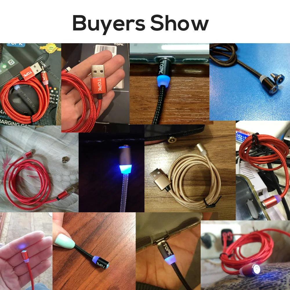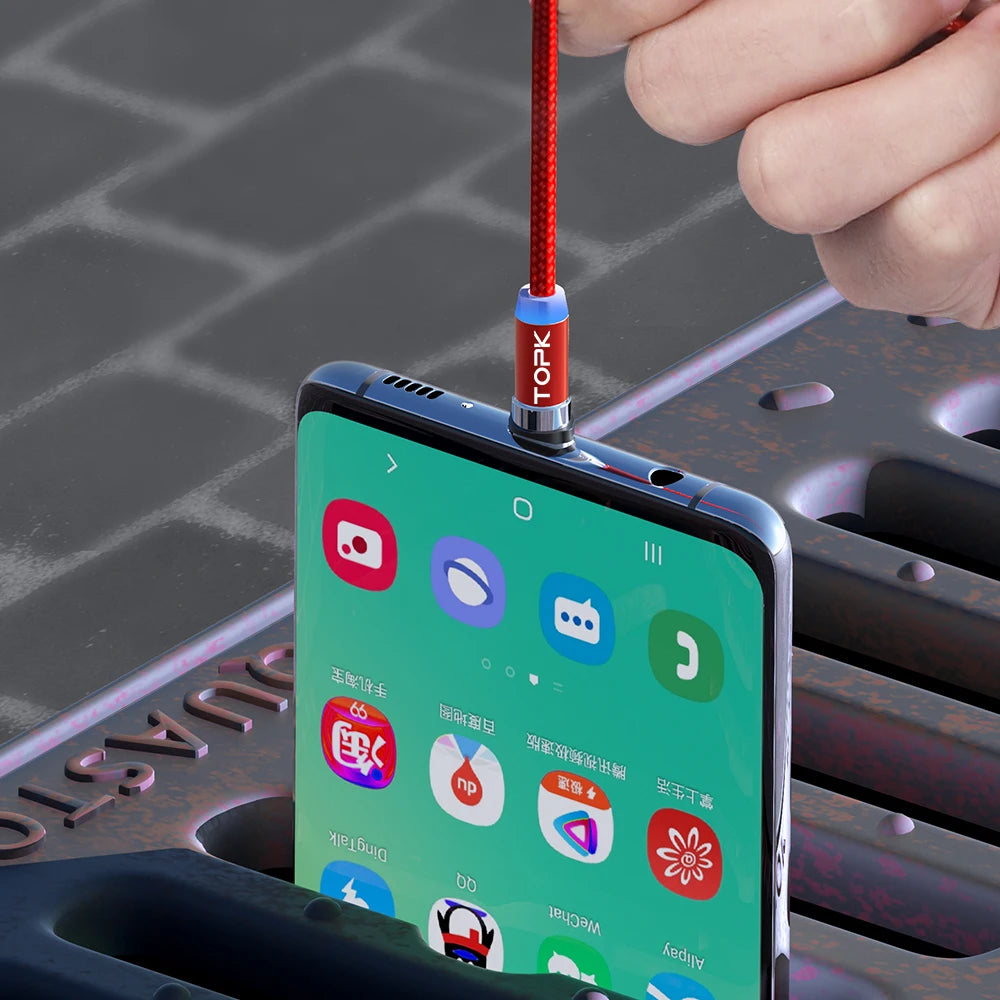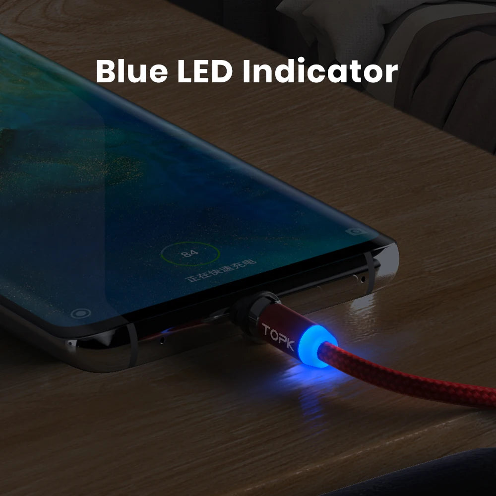 Magnetic Charging Cable 3 IN 1 TOPK 360 Degree Rotating Magnetic Phone Charger Cable Nylon Braided Magnetic Micro USB C Cable